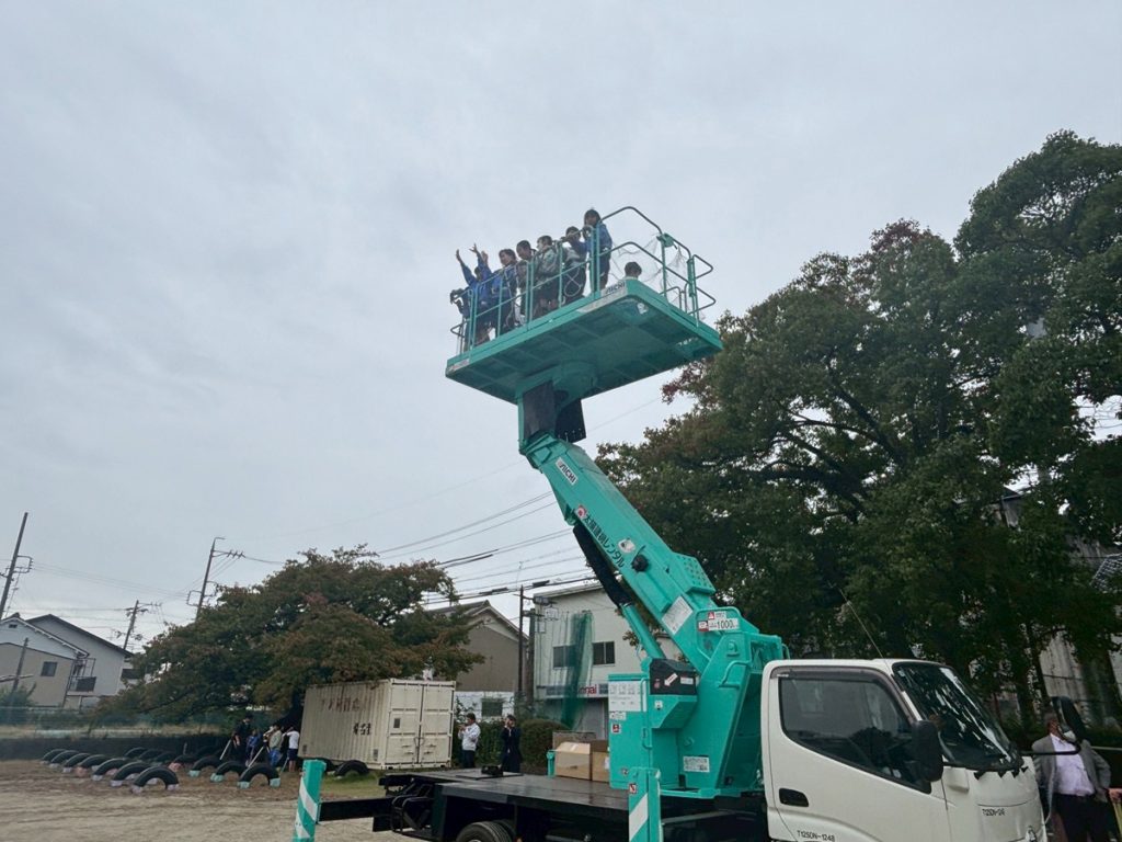 当日は座学(建設業のお仕事)と生コンクリート製作体験・自動追尾測量機による測量体験・高所作業車への試乗体験を行いました。