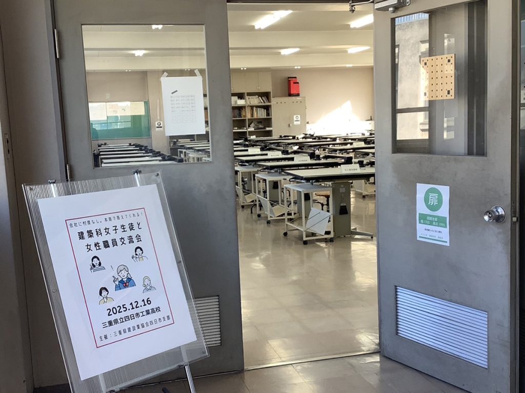2025年12月、四日市工業高校にて当社も所属する三重県建設業協会と三重県県土整備部が共同で建設業で活躍する女性技術者らが女子生徒の疑問に答える「女性技術者交流会」が開催されました。
