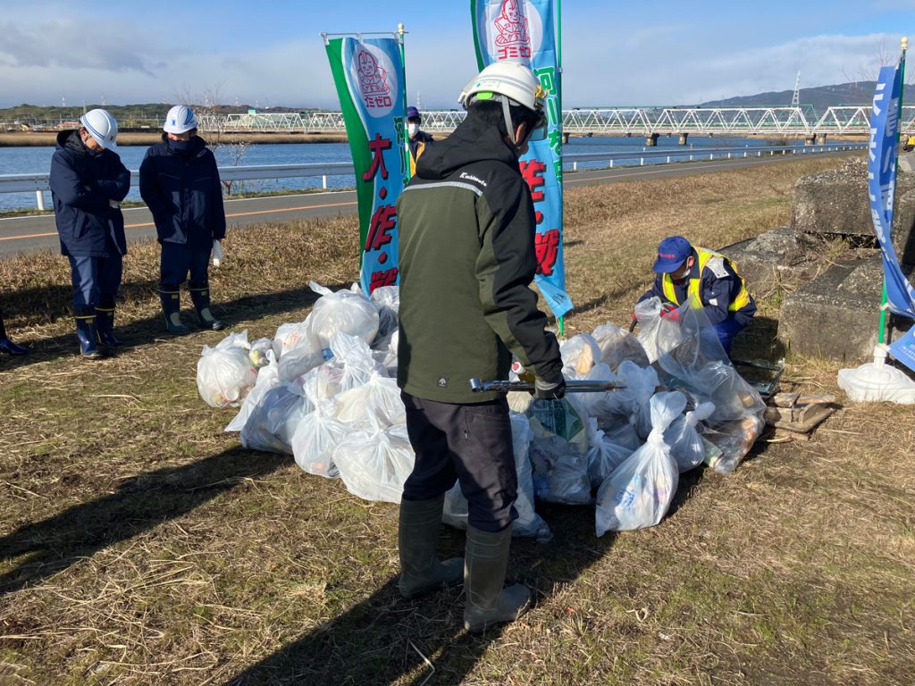 当社の社員有志が参加し、参加者の皆様と共に、長良川河口堰から東名阪橋梁に散乱するゴミ等の収集活動を実施しました。